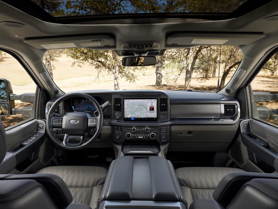 Modern technology features throughout the Ford Super Duty® lineup help you work smarter, not just harder. The SYNC® 4 infotainment system keeps you connected while on the move, and available features like Pro Trailer Backup Assist™ simplify even the most challenging towing situations. Contractors from Lake Odessa appreciate the available onboard scales that help ensure proper loading, while fleet managers throughout the heart of Michigan value the telematics capabilities that help optimize vehicle usage and maintenance schedules. Some notable tech features to add to your new Ford Super Duty® truck include a 12-inch cluster display, wireless charging pad, and Bang & Olufsen® Sound System.